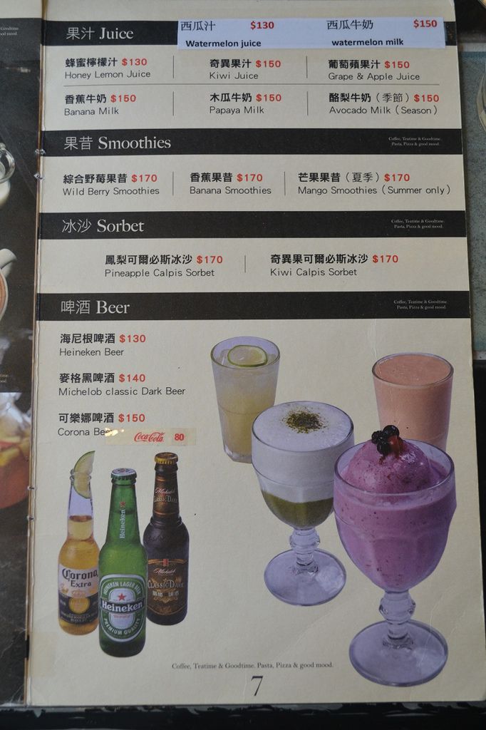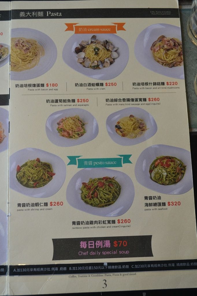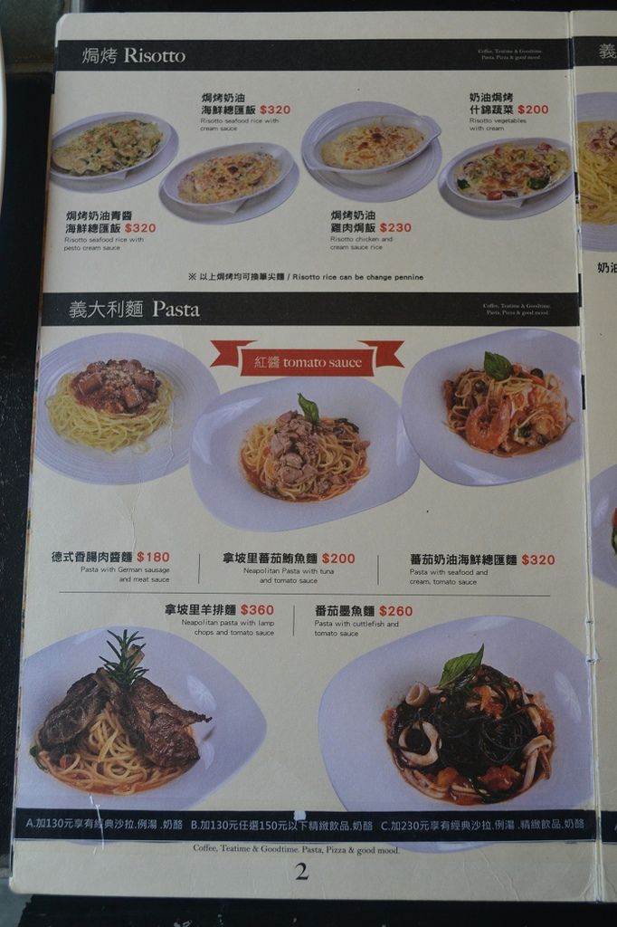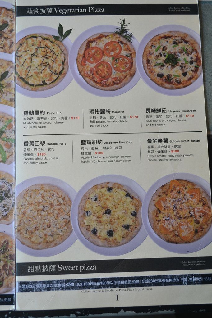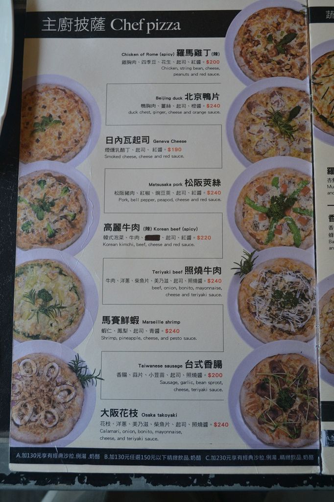 接下來來看看菜單囉!大致上可分為窯烤披薩、義大利麵、飯、沙拉和飲料幾個大類。