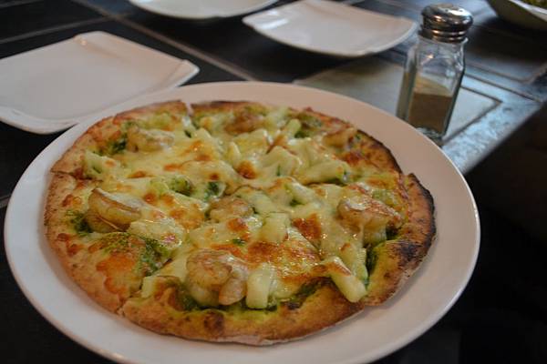 5. 馬賽鮮蝦披薩 佐檸檬椒鹽 (240元) 脆口的蝦肉和清爽的鳳梨,底下還有起司,再墊一層青醬,整體來說相當清爽~獲得Terminal clerk們一致好評XD