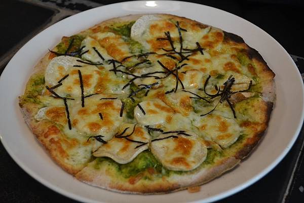 7. 羅勒里約披薩 (170元) 內含杏鮑菇、海苔絲、青醬與起司~
