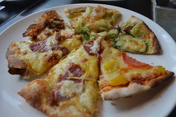 很多人一起吃就可以這樣交換~看這美麗的披薩拼盤>///<