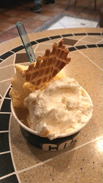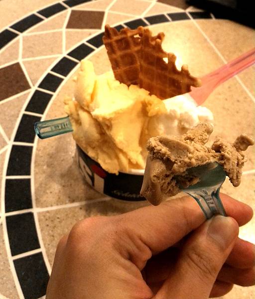 因為小編決定得很乾脆(?),都沒有要求試吃,因此老闆娘很熱情地主動舀一匙咖啡和芭樂給我們~咖啡很香><水果類的我想不出什麼形容詞啦~你會覺得你就正在吃那樣水果,只是口感換成冰淇淋!