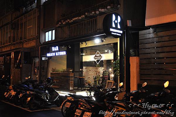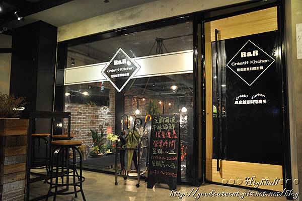門面,可以清楚地看到R&R的招牌,以及略為退縮,留出一小區室外空間的格局。