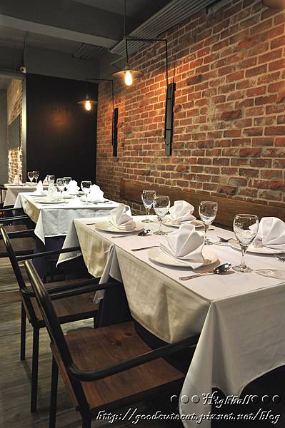 繼續欣賞一樓的用餐空間。斑駁的磚牆,讓食客好似旅人,在某個異國的街道邊的遮棚下,飢腸轆轆等待美食與美酒的饗宴。