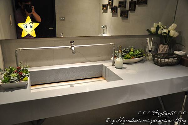 最後是洗手間。一間在餐點、氣氛上都走高等級路線的餐廳,如果洗手間只是隨便唬弄一下,門裡門外肯定是落差很重XD 除了大面鏡子延伸空間之外,小編喜歡R&R將水龍頭架在空中的設計,也喜歡有一些擺設,能讓素色的環境增添幾分綠意。