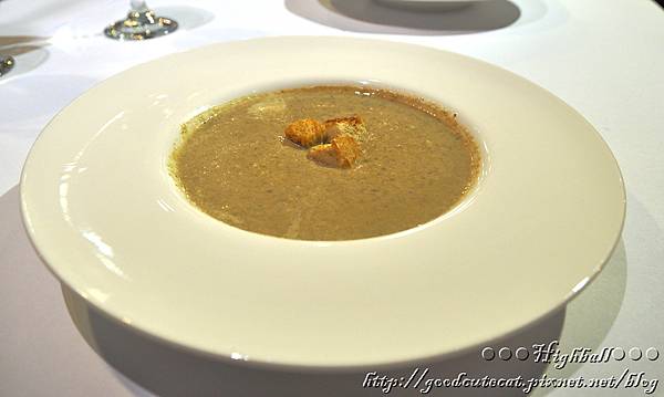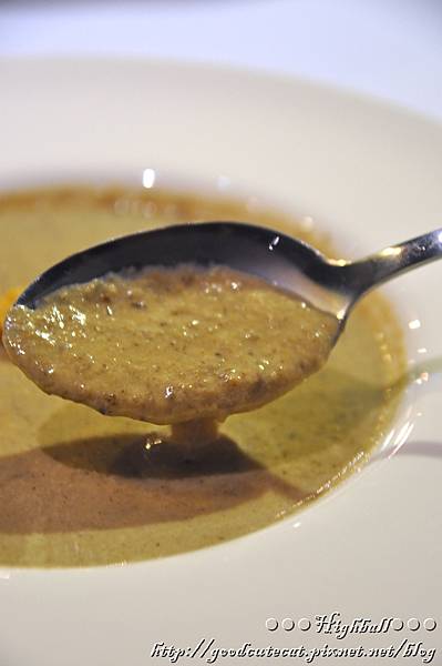蘑菇湯的顆粒和濃稠感覺,比南瓜湯更明顯,讓人不由自主地咀嚼,越咀嚼那香氣就益發明顯。