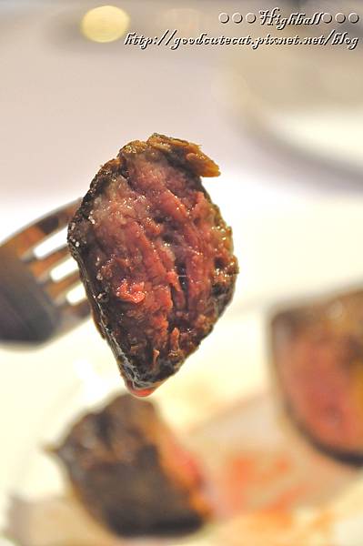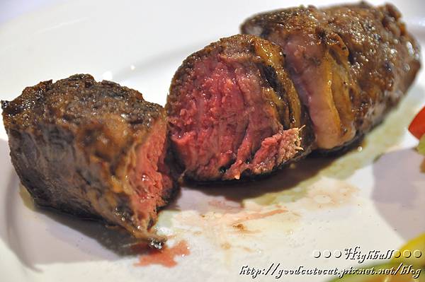 既然都點到了牛排,怎麼能不切開看看呢?R&R的牛排,有茹絲葵前大廚操刀,外層不用太多的佐料,直接烤得酥脆;裡頭約三分熟的紅肉,肉汁相當豐沛(根本像湯一樣@@),軟嫩但也有嚼勁。肋眼的筋不多,每口都非常地清楚明快。