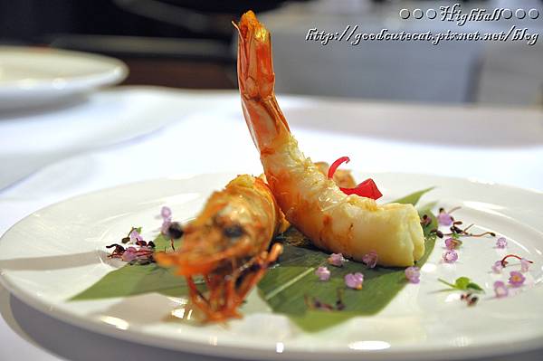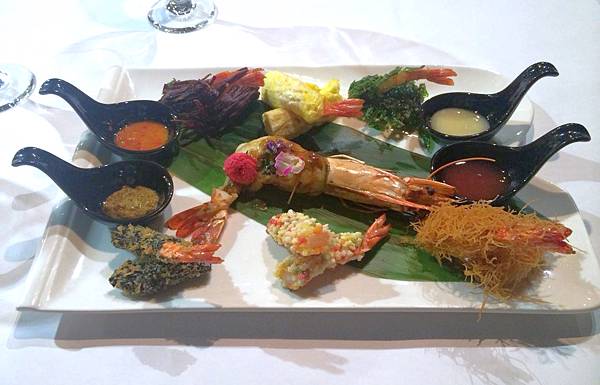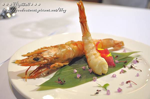 兩只大明蝦,或橫臥或挺身站好,擺盤本身就是一項藝術。