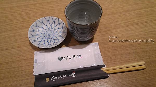 一坐下,服務人員將小碟子、茶杯、紙巾與筷子擺好。
