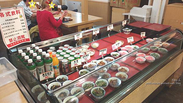 據說剛開幕的時候門可羅雀,幾天後報紙刊出「日本最大庶民食堂登台」的聳動(?)標語之後,就開始一路爆滿到現在了,日本企業大概愛死台灣人了XD 想吃還得現場排隊抽號碼牌,等待的時候,可以看看店外的menu。採單品販售,幾乎每樣單品的售價皆在百元內,不過要是一直覺得自己肚子餓而東拿一盤、西拿一盤的話,加起來還是很嚇人的...