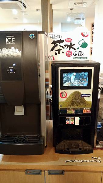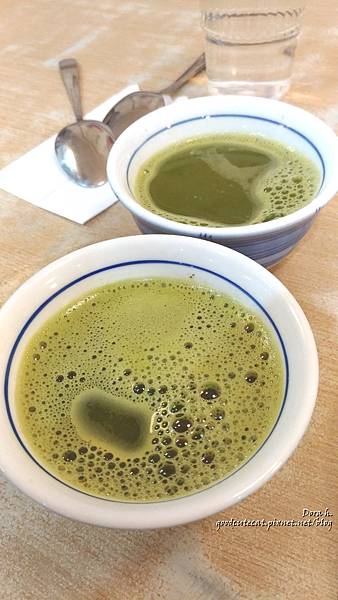 抹茶機出來的抹茶。網路上有食記說抹茶品質不優,不過看在免費且無限取用的份上...個人是覺得還ok,至少不是假假的化工抹茶。
