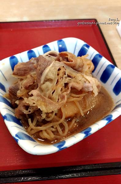 彷彿要下壽喜燒的那種牛肉片,鋪在燉爛的馬鈴薯上,底下襯著蒟蒻,口感層次豐富不過份量有點少了><