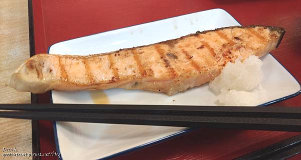 到壽司店常常很愛點鮭魚,某天自己逛超市發現其實並不便宜>< 因此這也是食堂裡唯一超過100元的單品。食堂的燒烤一律使用備長炭。雖是鹽烤但並不鹹,若選擇油脂更豐厚的部位可能會更香甜好吃,不過價格可能就更高了XD