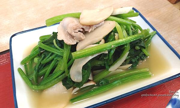 清燙菠菜,加上些許杏鮑菇片中和菠菜的澀口。
