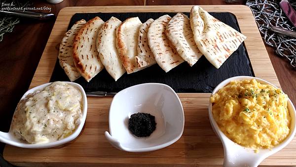 除了法式燉白菜,慢火炒的碎蛋軟嫩可口,以Q軟的烤餅夾著吃,有點地中海的風格,再抹上幾許松露醬添香,如同法式料理的入門標配。