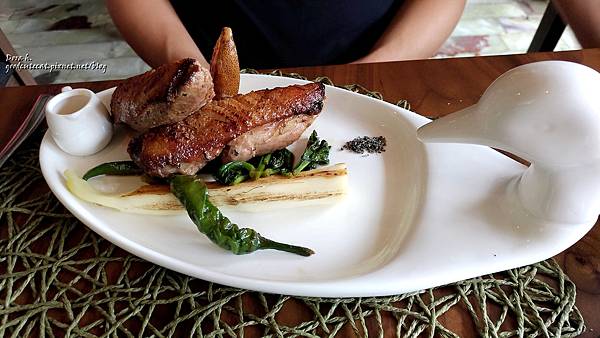 竟以鴨形狀的盤子呈現XD 煎烤得酥香的外皮和厚實的鴨胸肉,再以微酸的柑橘醬汁勾人食欲><