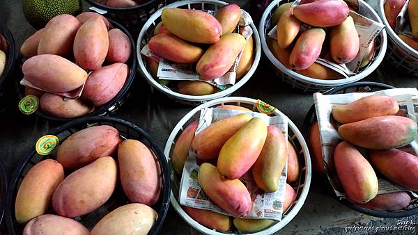 接著繼續走走逛逛,這一大籃的金煌,真的好想帶回家呀XD 除了芒果,還有鳳梨、榴槤、火龍果等水果。