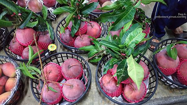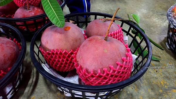 走著走著,發現了這一區乍看像蘋果,又像甜菜的...竟然也是芒果!小販阿姨熱心地介紹,是玉文五號。玉文的產期是5-7月,是由郭文忠先生取金煌為母株、愛文為父株培育而成,並在1995年發表。玉文的名稱,則來自玉井的「玉」,與郭文忠先生的「文」。甜度高、酸度低,耐擺放。