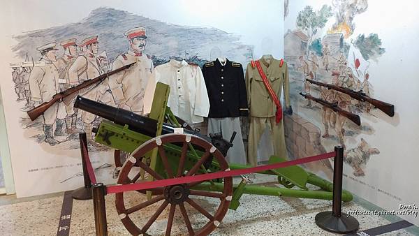當時日本正規軍所使用的槍、砲,以及軍服展示。