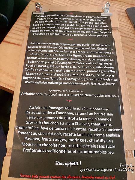 價位:★★★★ 三菜的晚餐30-40歐算是巴黎餐酒館中等的消費;合台幣大約1000元出頭,仔細想想在臺灣吃類似的館子常常也逼近一張小朋友,就不覺得算太貴。