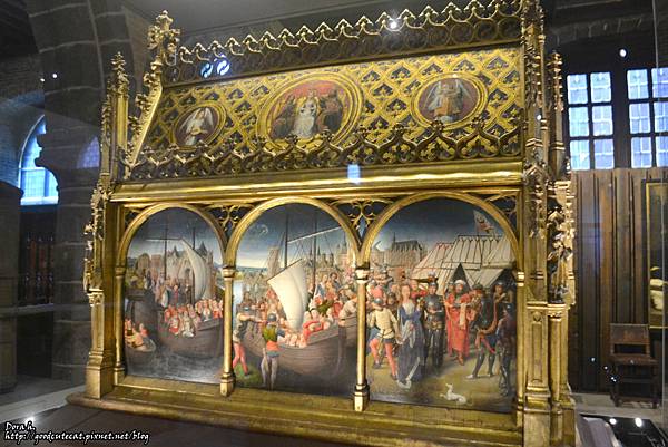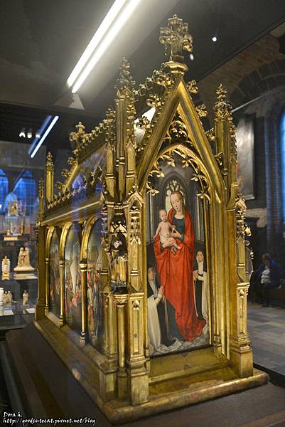 離開教堂以後,這一群紅紅的建築就是過去聖若望醫院的藥房,展示當年各種草藥以及給藥的器具。圖片後方就是上述聖母教堂的鐘樓啦。參觀藥房後,走回大馬路繼續步行約3分鐘才是聖若望醫院的主建築。建於11世紀,是歐洲最古老的醫院之一,現在則主要展示德裔知名畫家梅姆林 (Hans Memling) 作品。鎮館之寶為1489年繪製的「聖尤蘇拉的遺物箱 (St. Ursula Shrine)」。