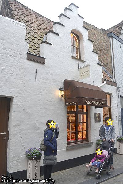 參觀告一段落,胃也由拉麵填飽之後,準備來吃巧克力啦!網路上有許多介紹各種布魯日巧克力店的專文,在我看來...巧克力店相距無幾...但我挑了一間可以試吃的給大家參考xDD 從聖若望醫院的大街往南走,一條巷子右拐進來,就可以看到白色可愛的山牆啦。