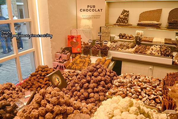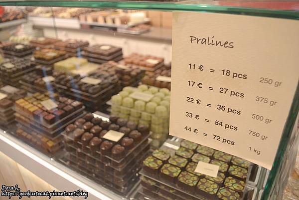 另外玻璃櫃裡特殊口味的巧克力則是按顆數在賣,如18顆11歐、27顆17歐...以此類推;基本上無論是在布魯日還布魯塞爾,這都是很有競爭力的價位xD