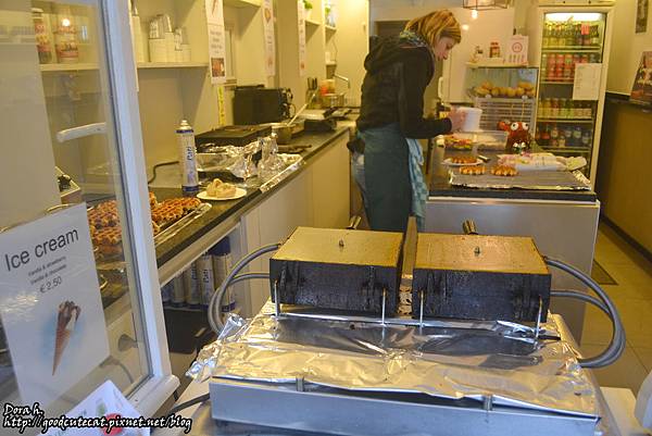 在這個滿街都在賣巧克力、鬆餅的城市,說真的不用太計較一定要吃哪間的鬆餅xDD 至少我自己是這樣想啦!這間 Laurence 甚至在 Google map 上都找不到,但就在 Pur chocolat 的對面,開著一扇小窗對著往來街上的旅客販賣鬆餅。就由老闆娘一個人負責弄麵糊、烤鬆餅、加配料、收錢等等一氣呵成。