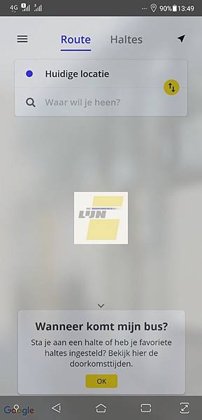 可能因為不想破壞市區古蹟,火車站離市區主要景點最少有個20分鐘步程,或者讀者可以下載De Lijn這個app,將單程3歐的票價壓低至1.8歐。以下為操作範例,首先先打開這個app。App的Logo在畫面中央,黃色底灰色字的。