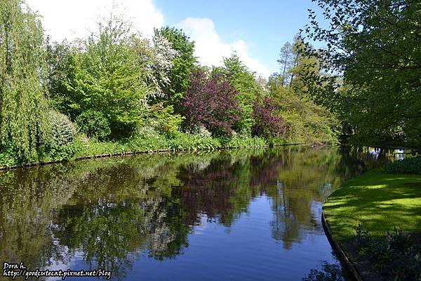 過一條小河~~庫肯霍夫花園裡忠實呈現荷蘭的地景特色,運河與風車~~就來到了"Mill"風車區。